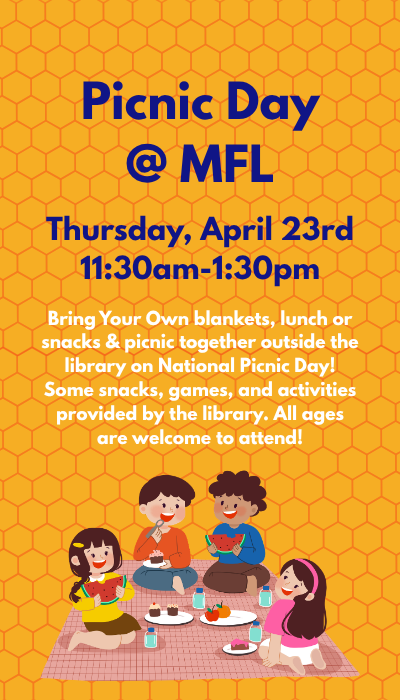 Registration is required as space is limited. If you register and are a no-show, you will be removed from future MFL kids program. Please be considerate of families on our wait list who would love to attend in your place.